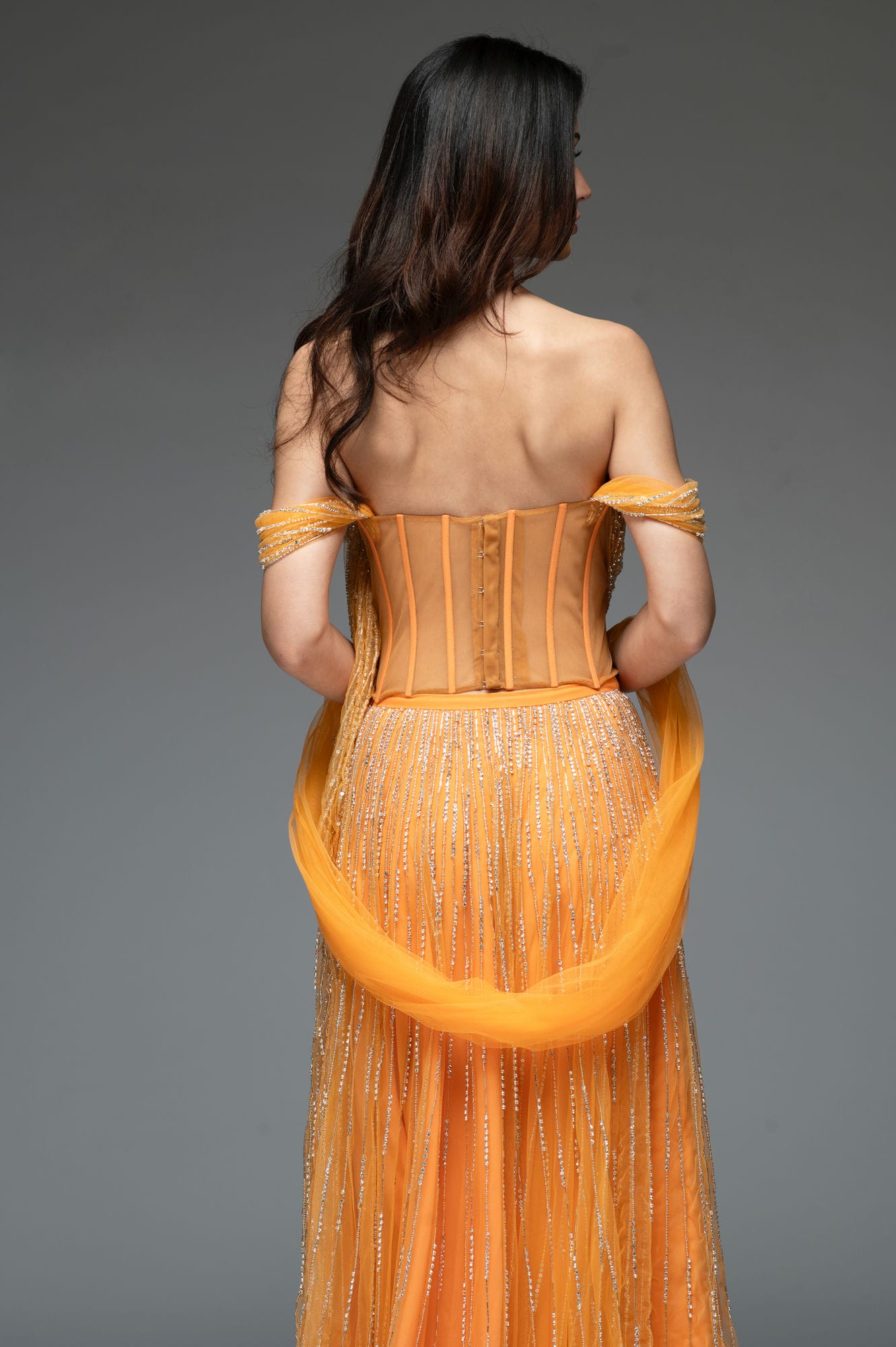 Tulle corset with boning.